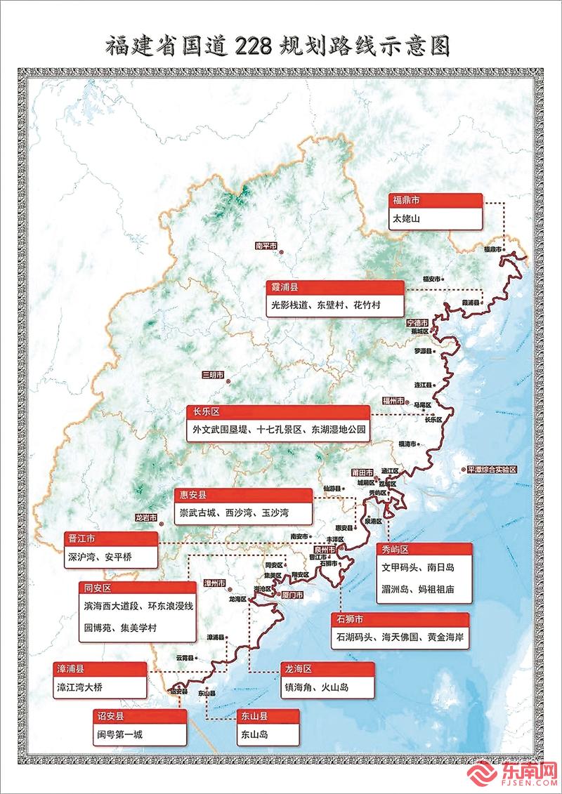 两年前,我省启动国道G228福建段建设,提出“十四五”期间,将构建起鱼骨形道路体系,打造以“东南海韵、魅力闽道”为特色的滨海风景道。