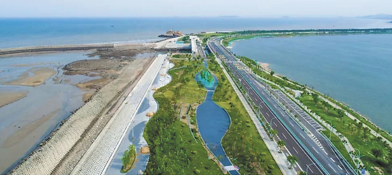 国道G228泉州台商投资区段,起于后渚大桥东桥头,连接惠安山霞,全长17.98公里,宽阔舒畅的海湾大道串起了沿线半月湾、玉沙湾、月亮湾等滨海资源,沿路便民停车场、公路驿站、公园随处可见。