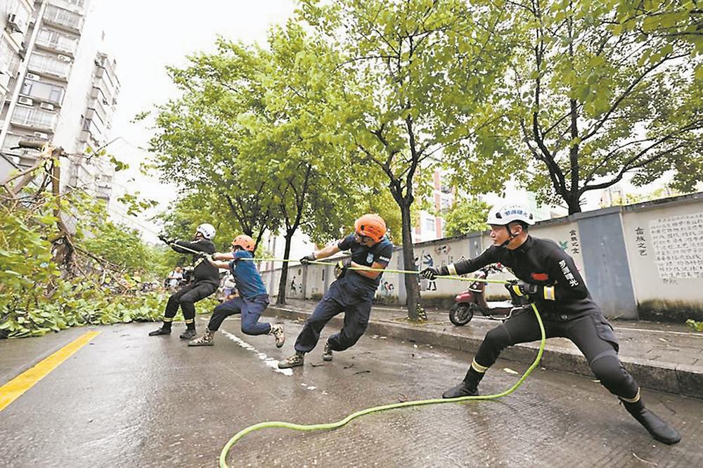 25日,罗源县公安局交警大队联合罗源县蓝豹减灾事业发展中心和罗源县曙光应急救援中心,对一棵倒伏树木进行处理。福建日报记者 施辰静 通讯员 林晋如 刘其燚 摄