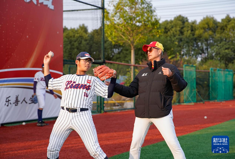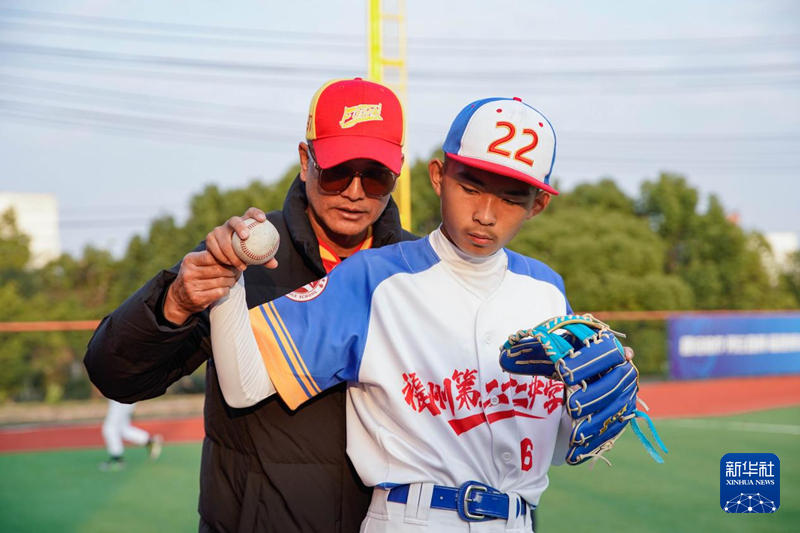 为培育棒球后备人才,福建省棒球队正在尝试通过青少年棒球训练营来选拔好苗子。图为台湾教练余文彬为训练营的运动员示范投球动作。新华网 蒋巧玲 摄